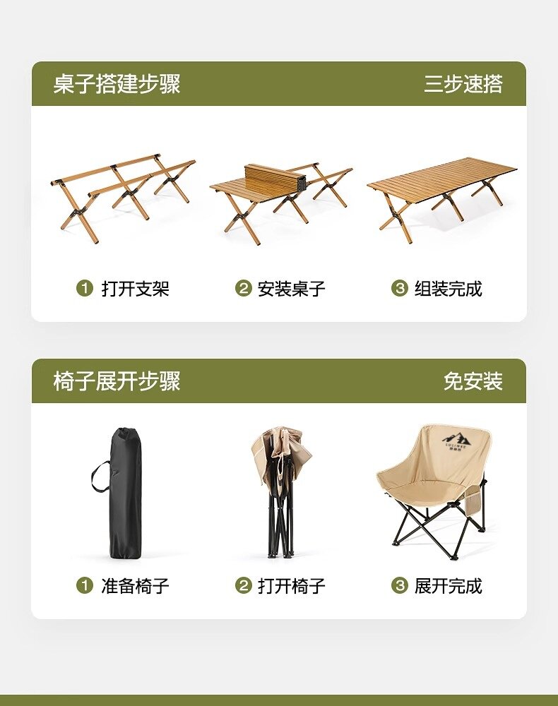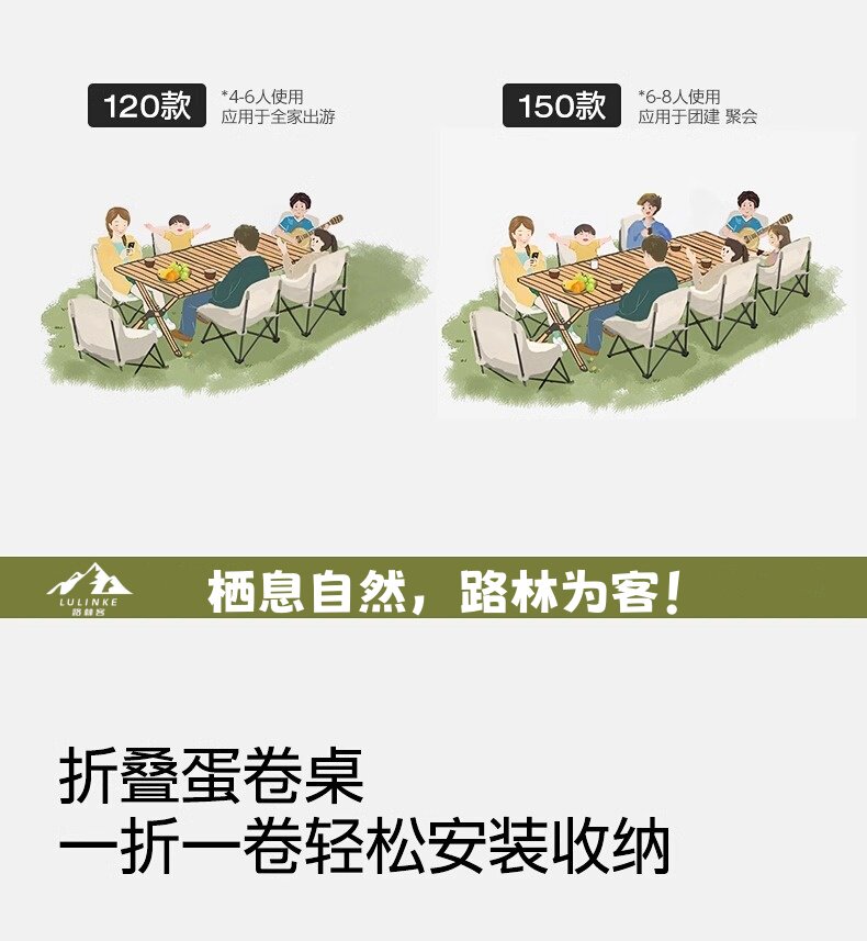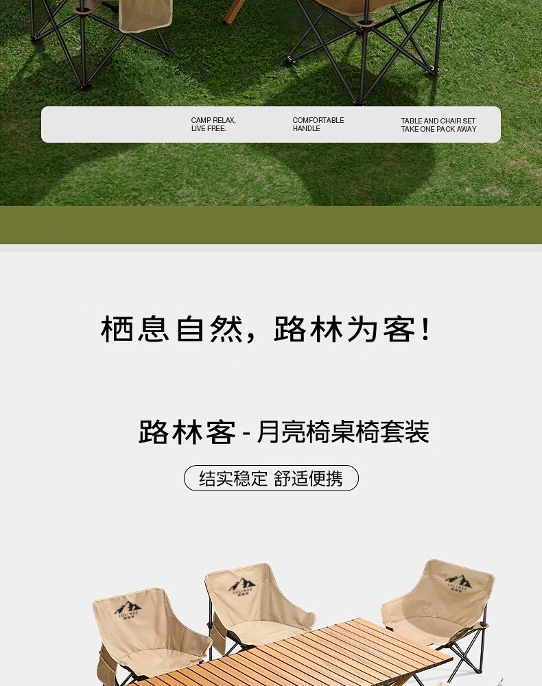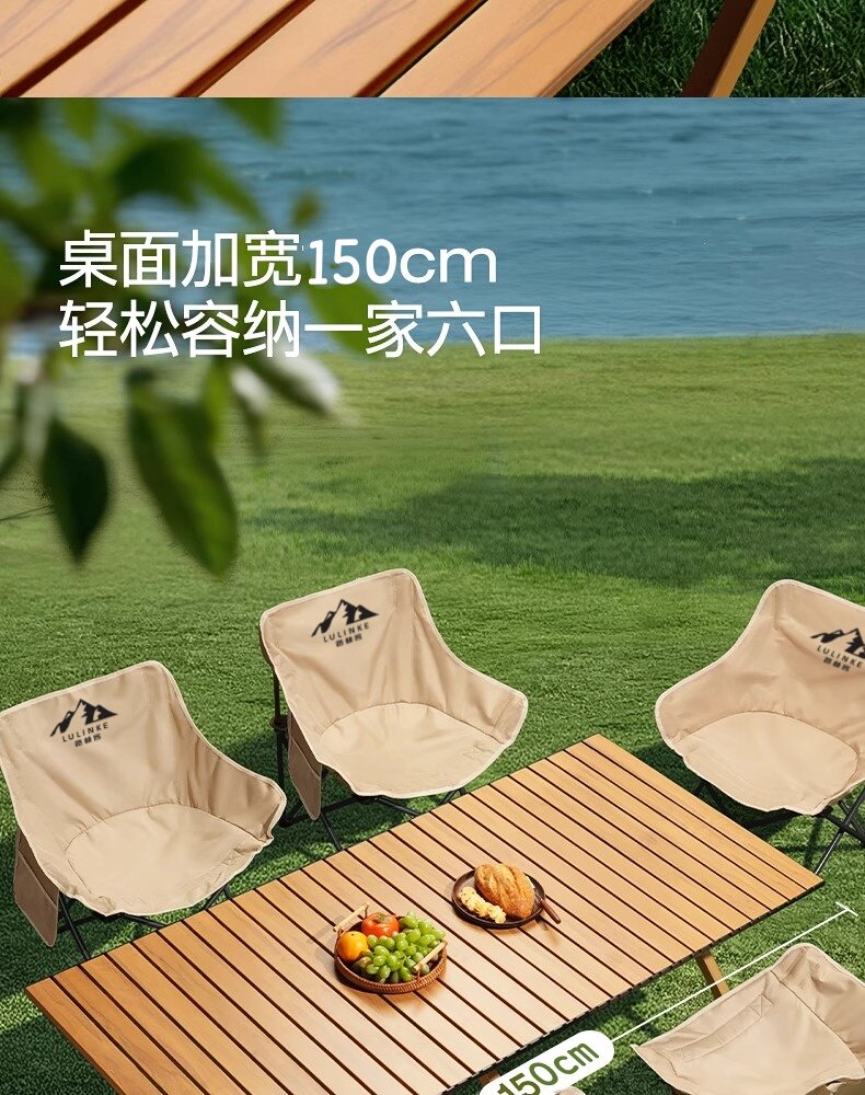 路林客露营桌椅蛋卷桌月亮椅户外折叠椅子桌子一体野炊装备全套