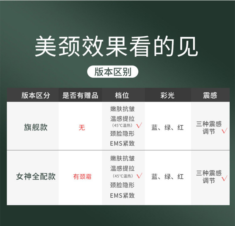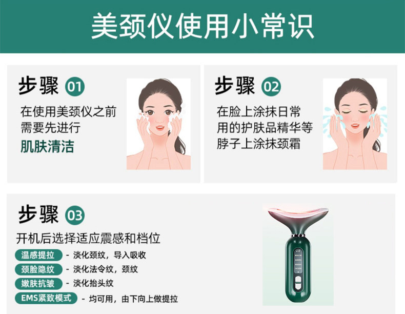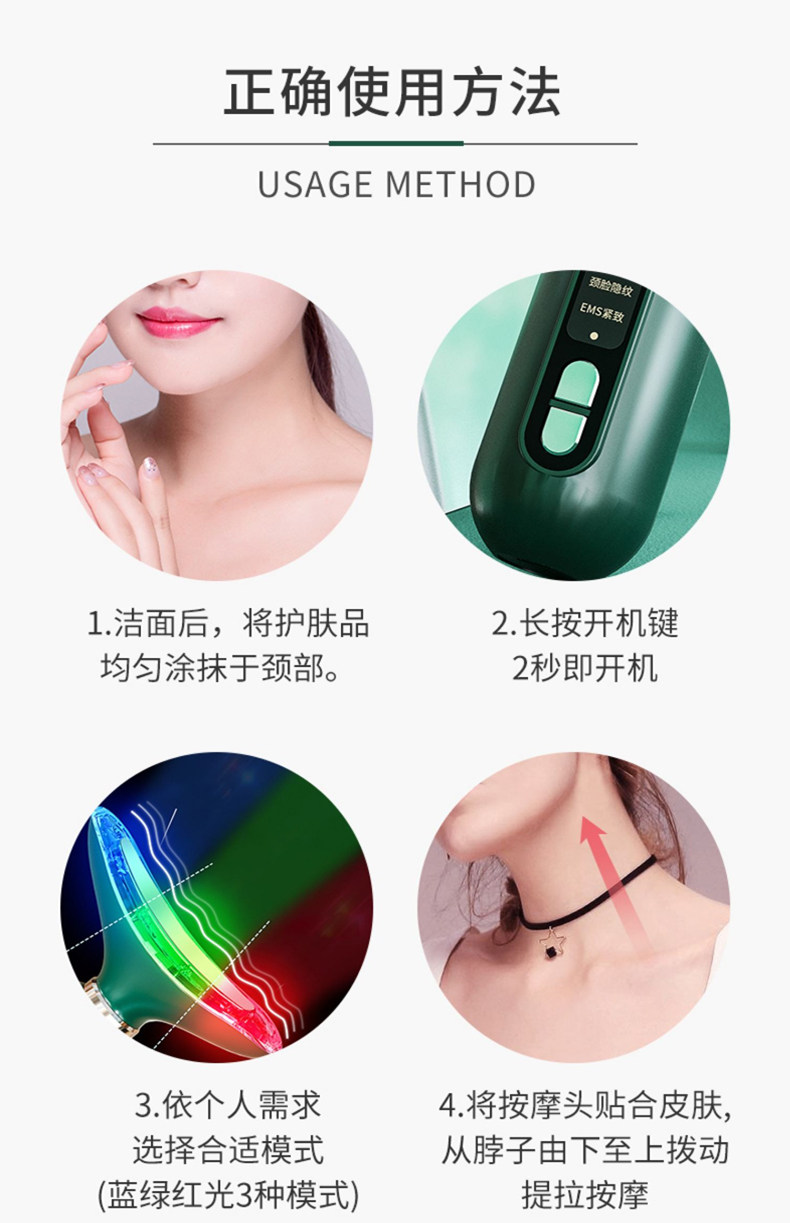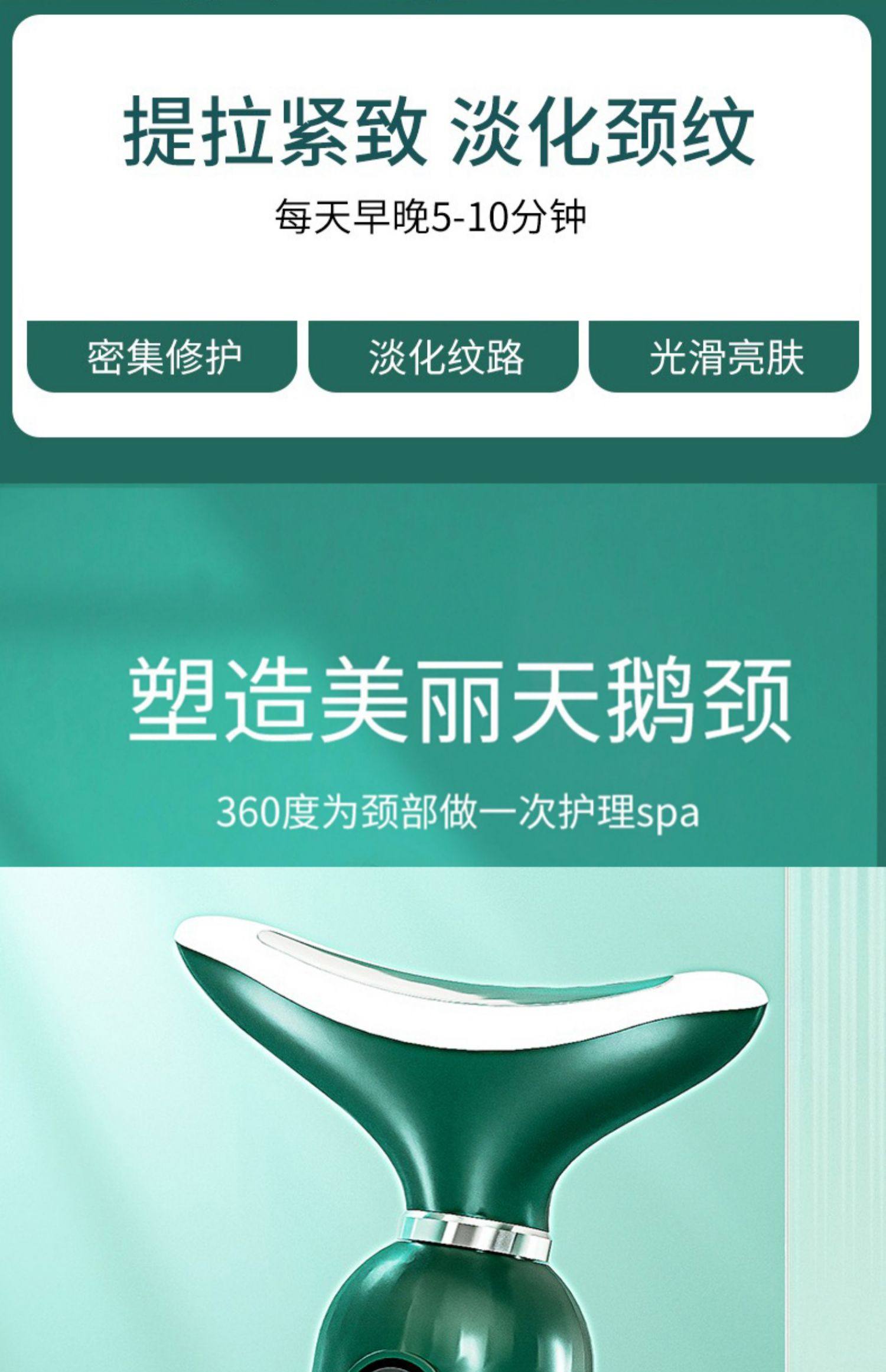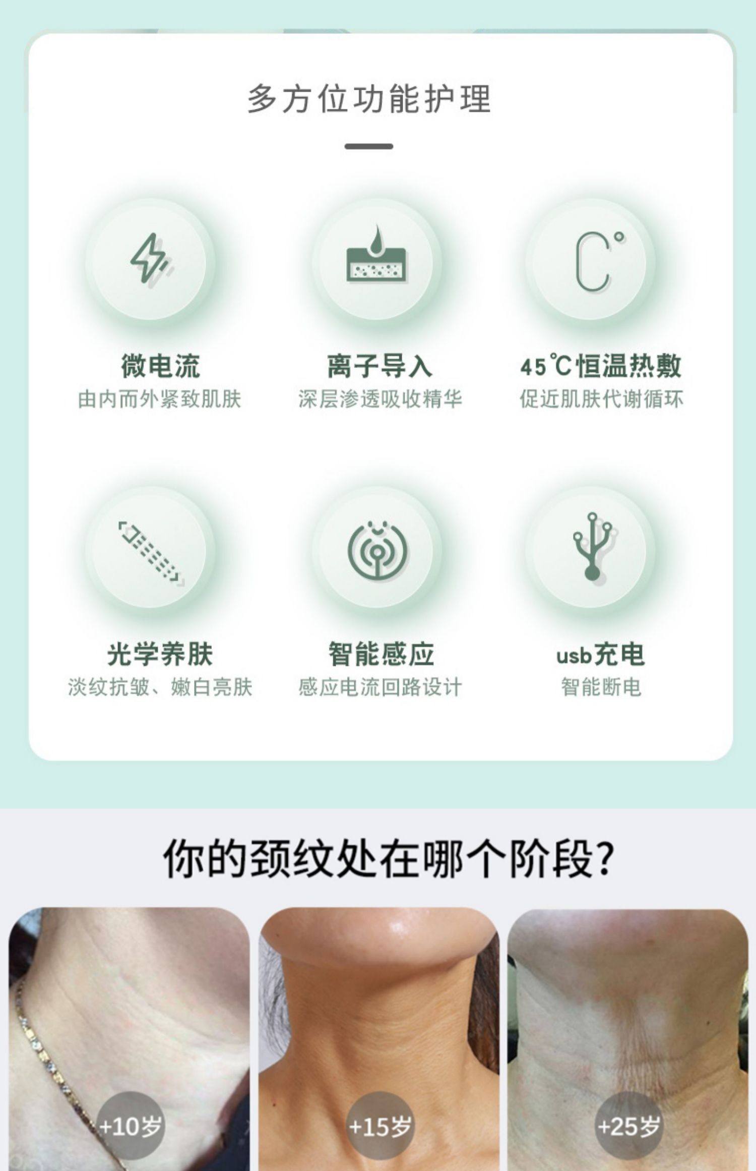 紧致淡纹+震动导入+颈脸两用+塑造天鹅颈