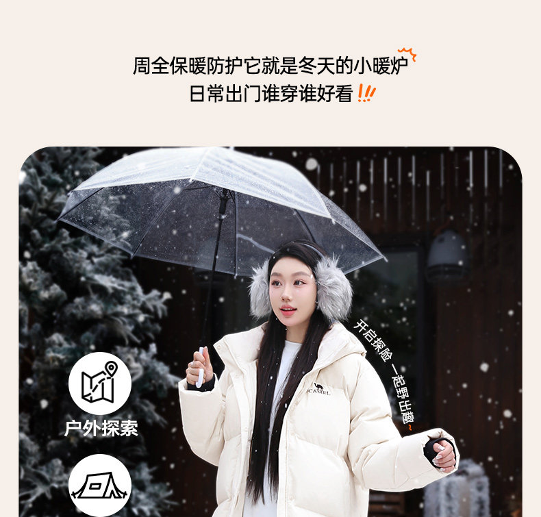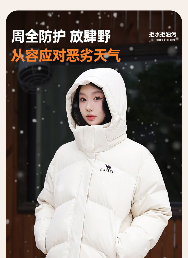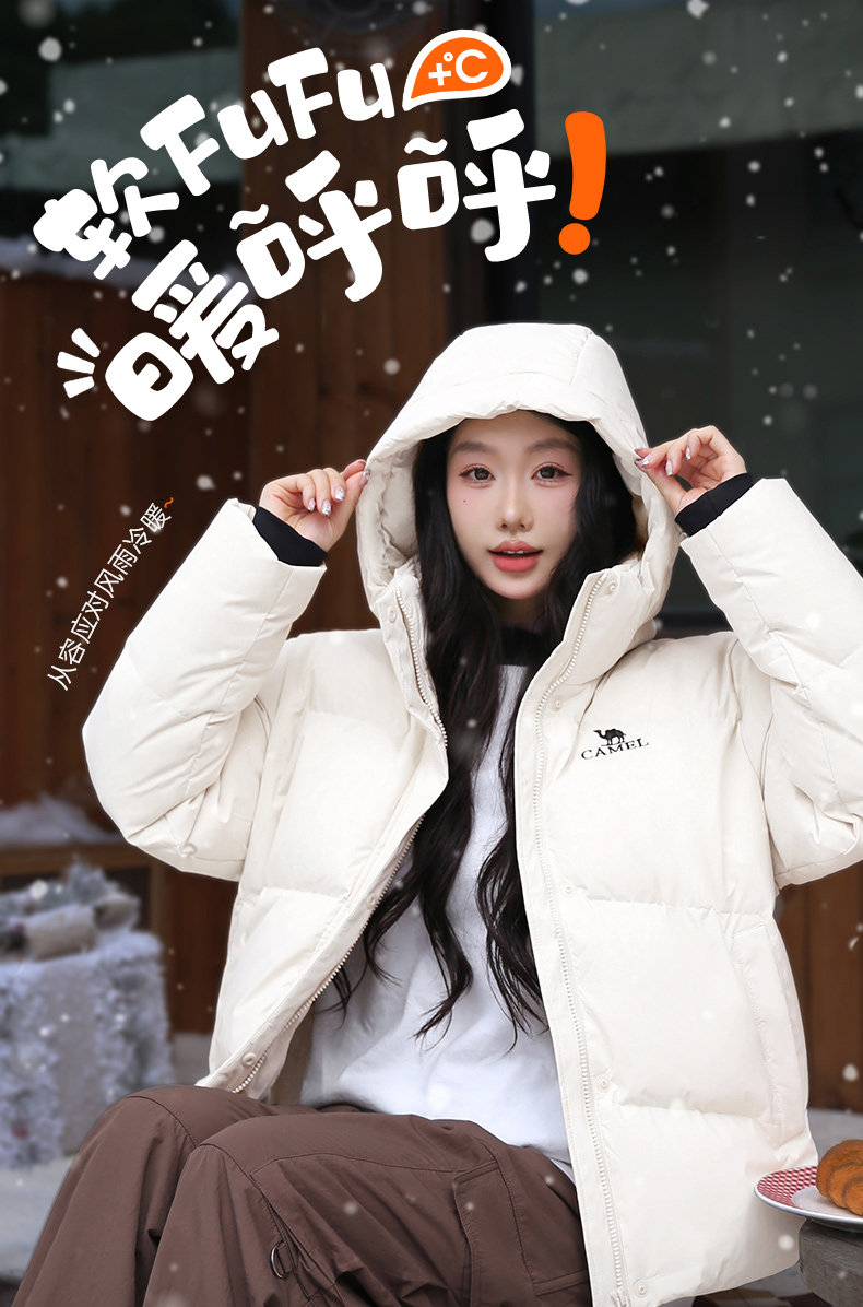 【小红书同款】骆驼羽绒服女装2025冬季三防连帽加厚保暖短款外套